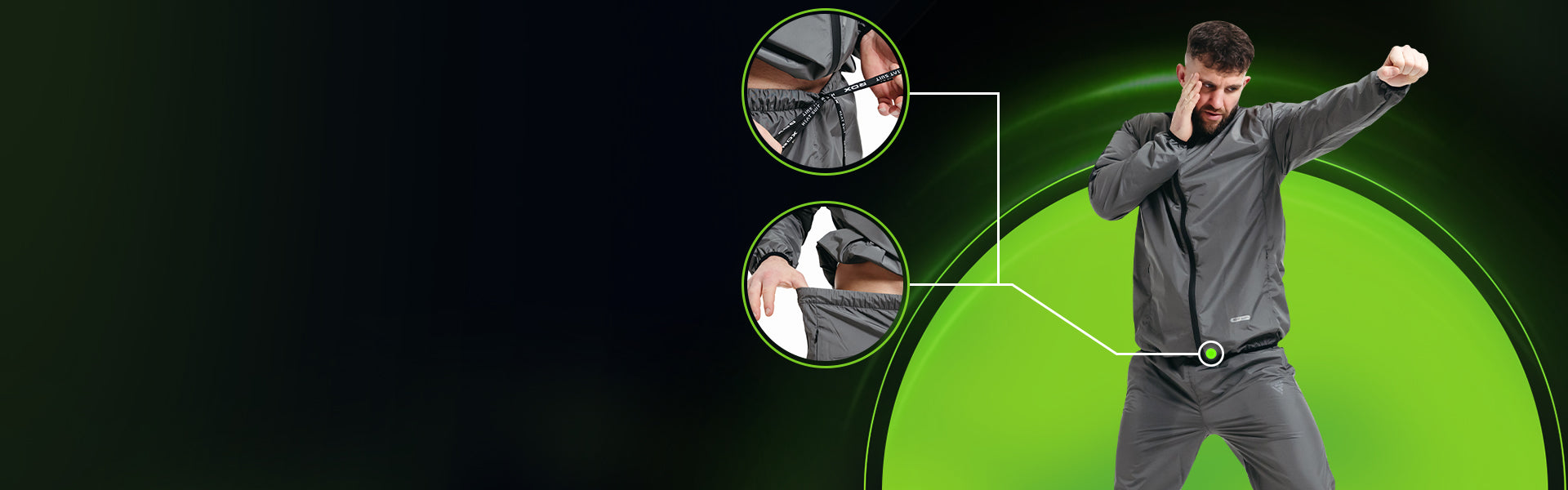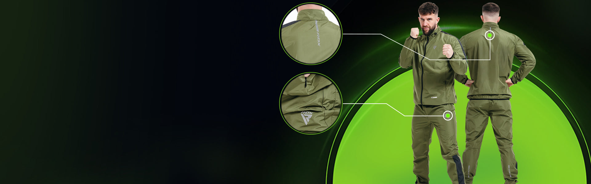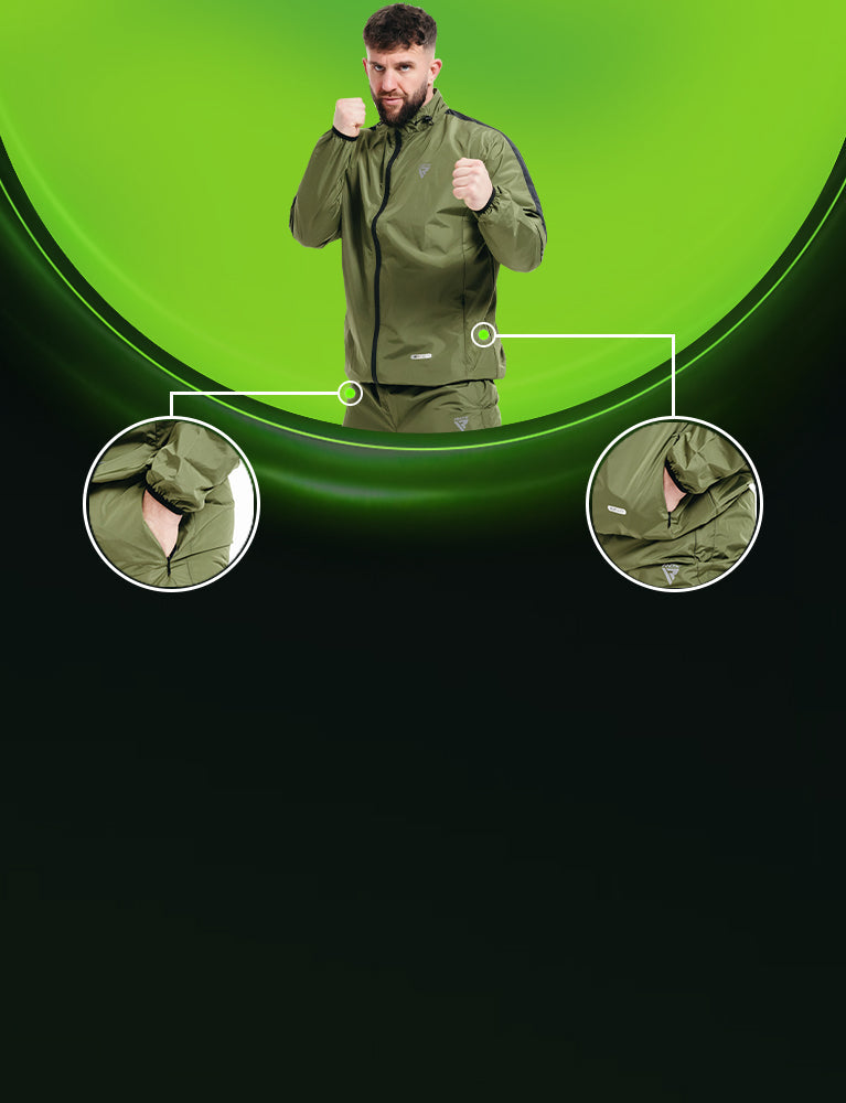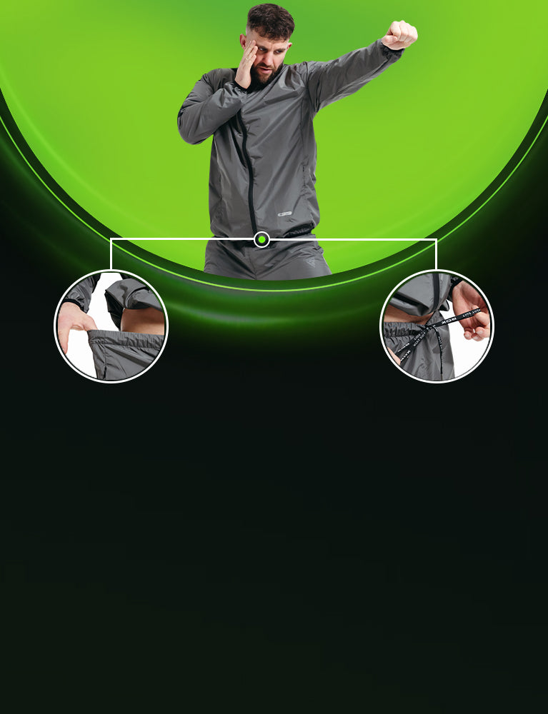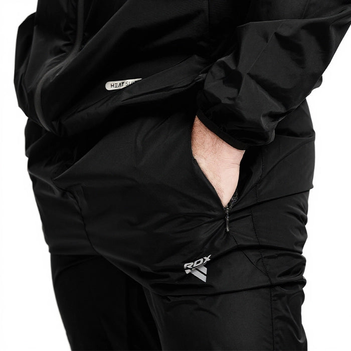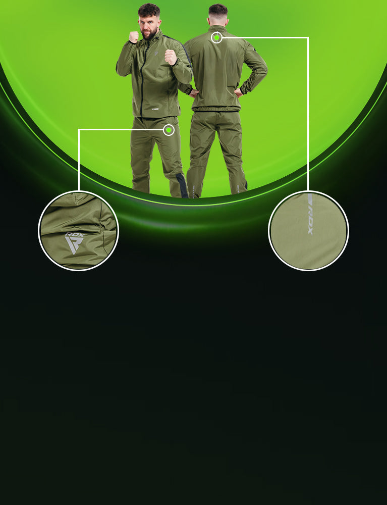 RDX C1 sweat suit, REACH & OEKO-TEX 100 compliant, ignites your workouts with 5x sweat power. It boasts Heat Suit Tech's unique silver lining in our latest Instant Sweat Fabric. Hugging fit, reflective accents on front, back, and sides, indoor-outdoor versatility œ this eco-warrior sculpts, sweats, and shines. Conquer any workout, naturally.