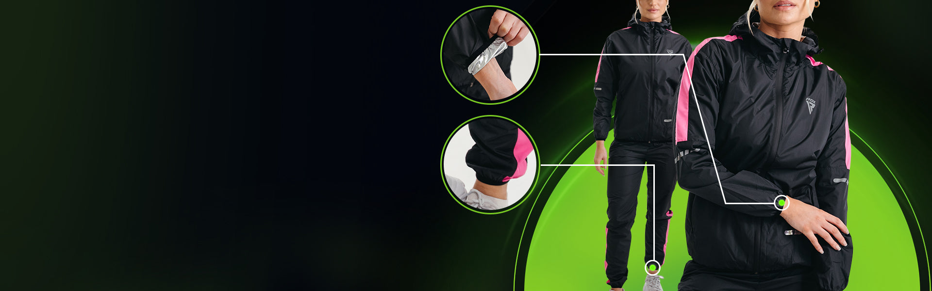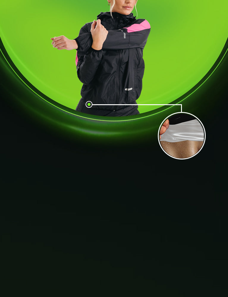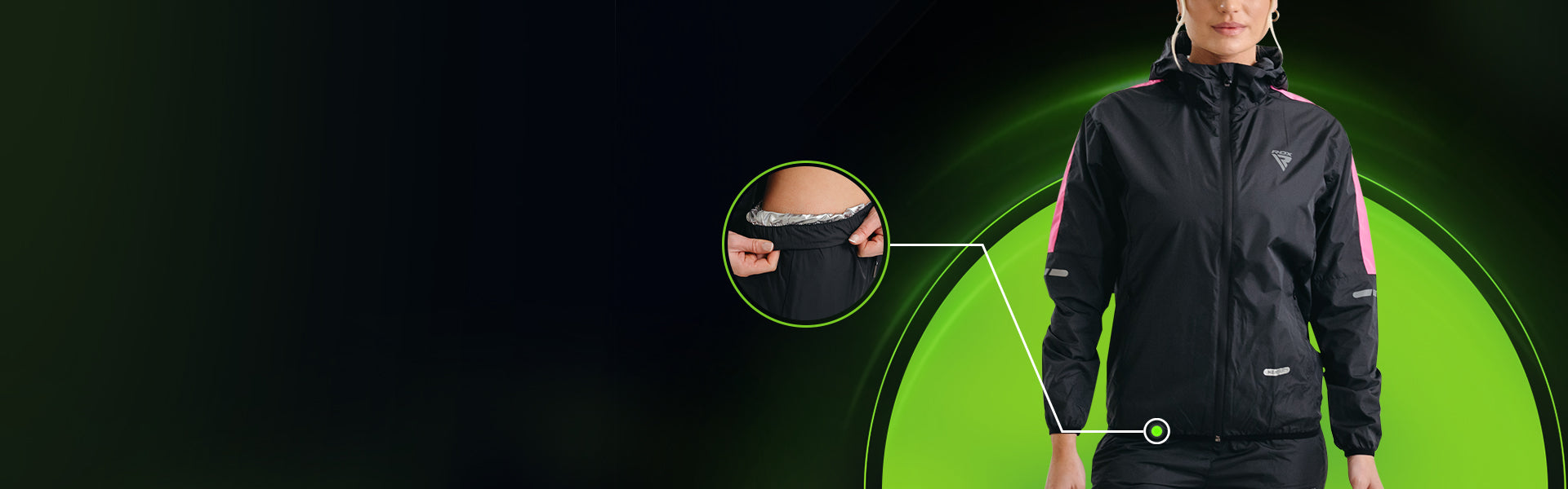 • 5x sweat power with Instant Sweat Fabric and silver lining of Heat Suit Tech.