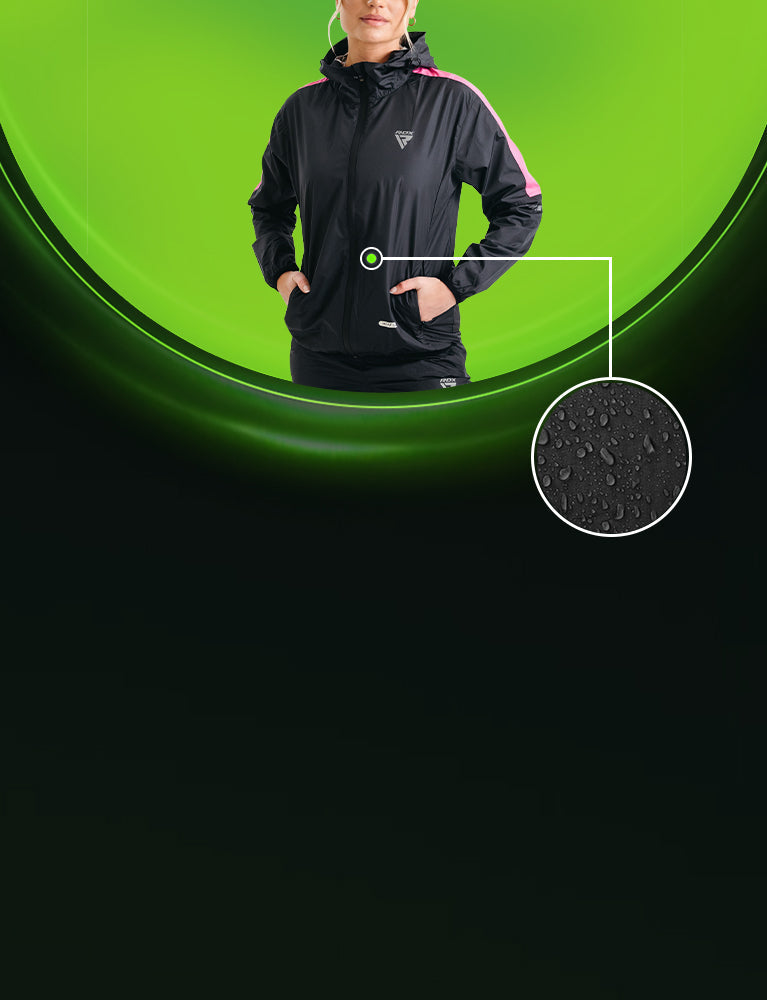• Elasticated cuffs and ankles lock in heat for optimal perspiration.
